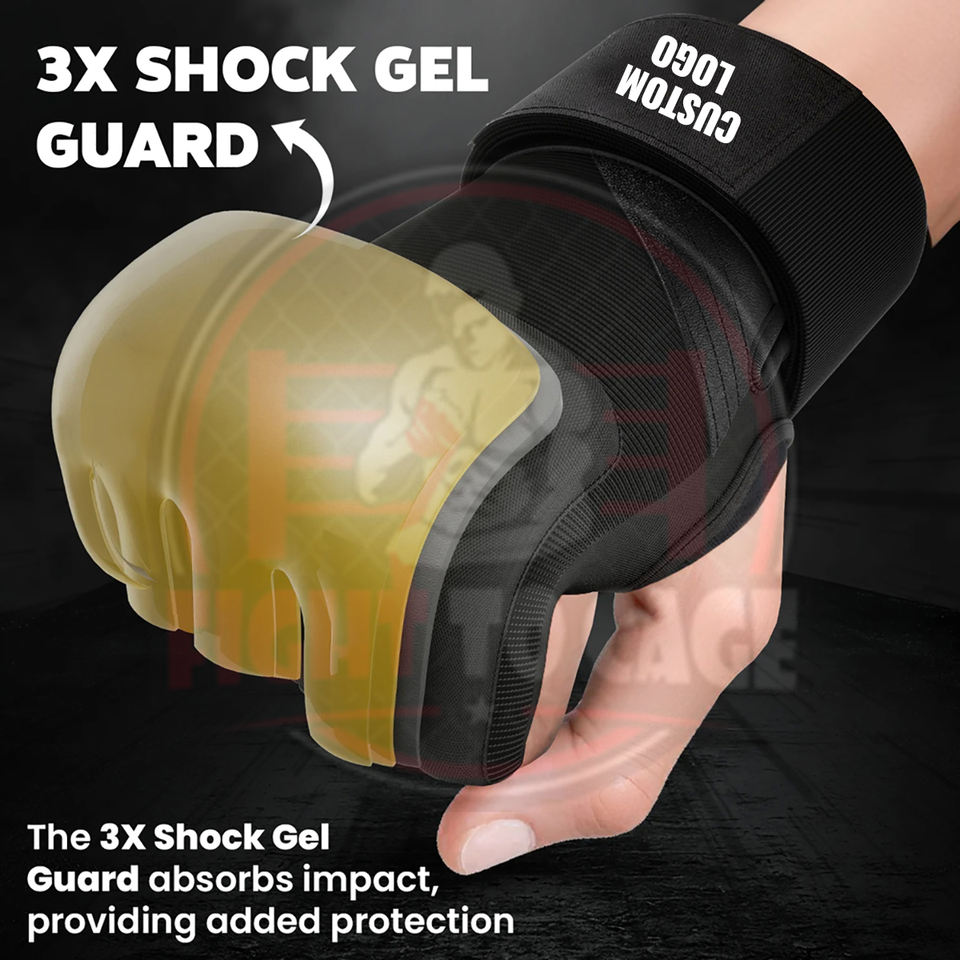 ผ้าพันมือเจลสำหรับมวยไทย คิกบ็อกซิ่ง คุณภาพสูงสุด สีดำ นุ่มพิเศษ ยืดหยุ่นได้ กระชับมือ