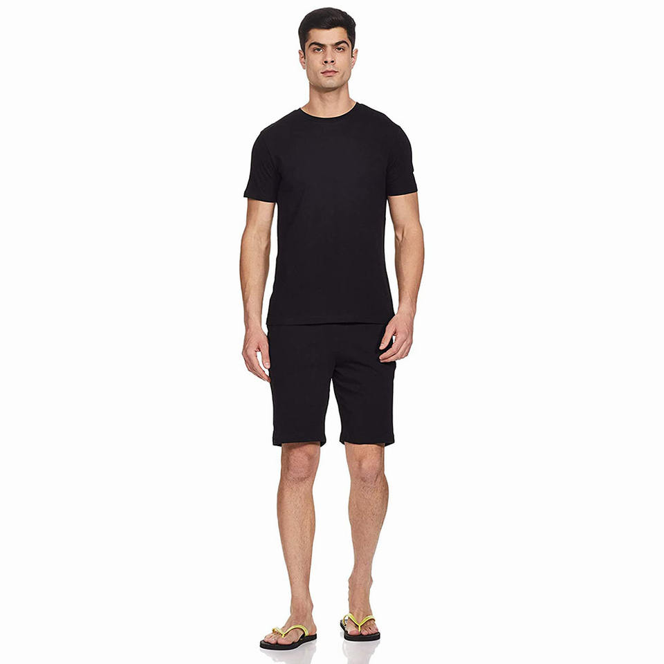 2025ชุดฤดูร้อนลำลองของผู้ชายระบายอากาศสีดำ100% ผ้าตาข่ายโพลีเอสเตอร์แห้งเร็วเสื้อ & กางเกงขาสั้นพิมพ์ลาย
