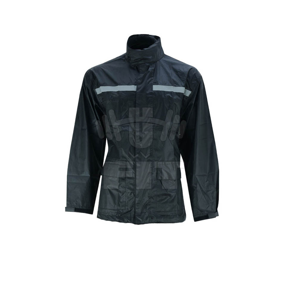 ชุดกันฝนผ้าไนลอนสีดำเรียบง่ายระบายอากาศได้น้ำหนักเบาพิมพ์โลโก้ได้ตามต้องการ