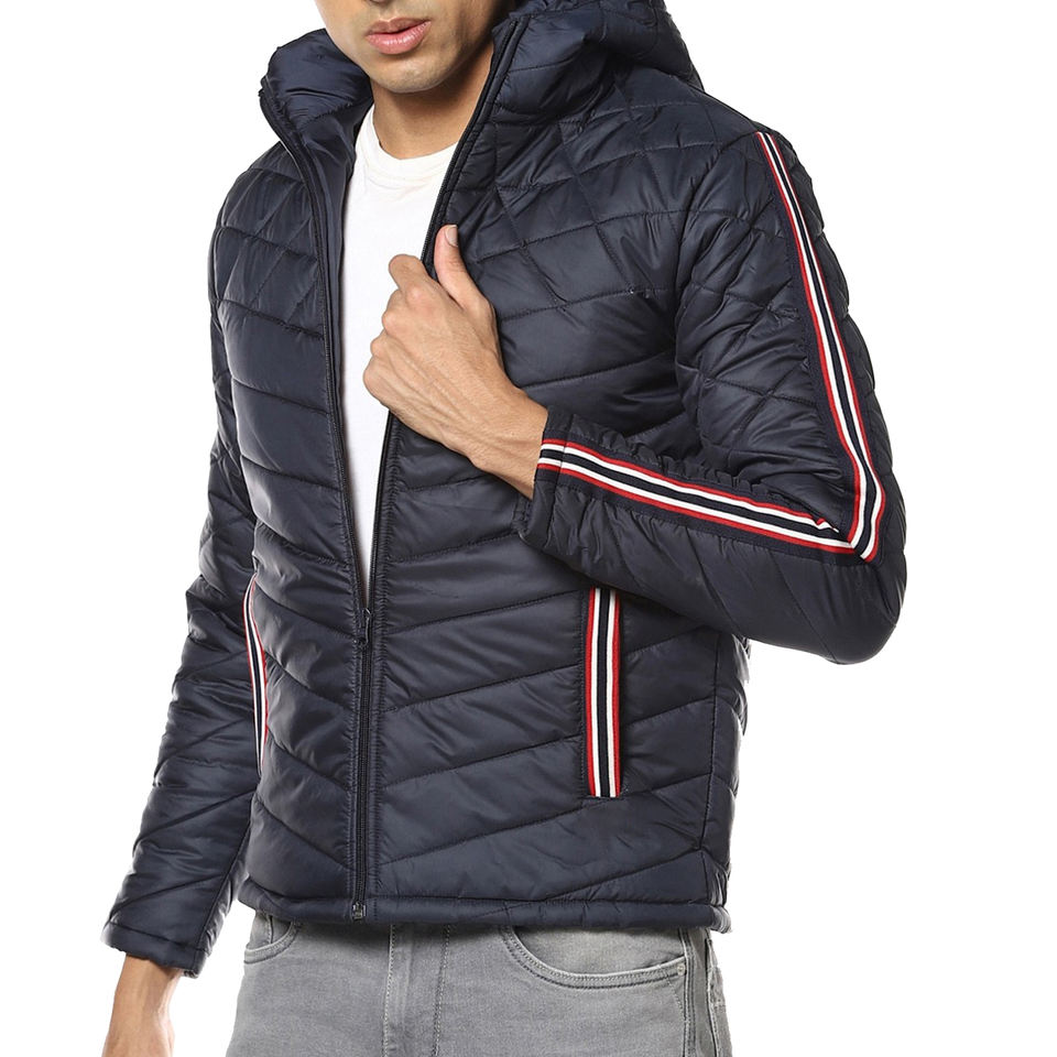 แจ็กเก็ตบุนุ่มให้ความอบอุ่นสำหรับผู้ชายเสื้อแจ็คเก็ตทรงพองสำหรับฤดูหนาวสีดำ