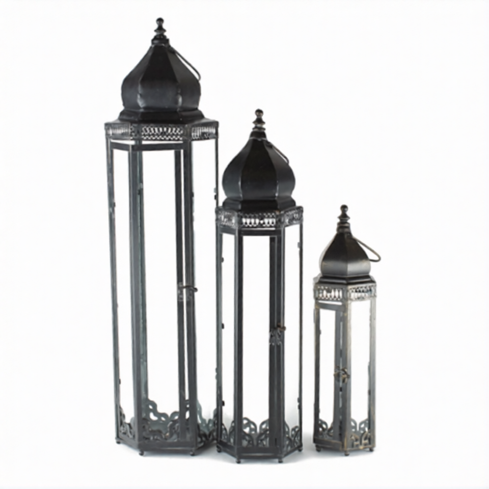โคมไฟแขวนโลหะและโคมไฟแก้วสำหรับตกแต่งงานแต่งงานสีดำใช้ตกแต่งงานแต่งงาน