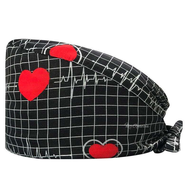 หมวกสครับสีดำสำหรับผู้ชายและผู้หญิง หมวกทรงบูฟฟองพร้อมริบบิ้นผูกด้านหลัง แถบซับเหงื่อ ขนาดสั่งทำได้
