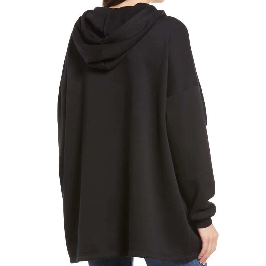 เสื้อมีฮู้ดผู้หญิงผ้าฝ้ายโอเวอร์ไซส์สีดำ, เสื้อมีฮู้ดสไตล์สตรีทเสื้อมีฮู้ดสำหรับผู้หญิงลำลองฤดูหนาวสีพื้น