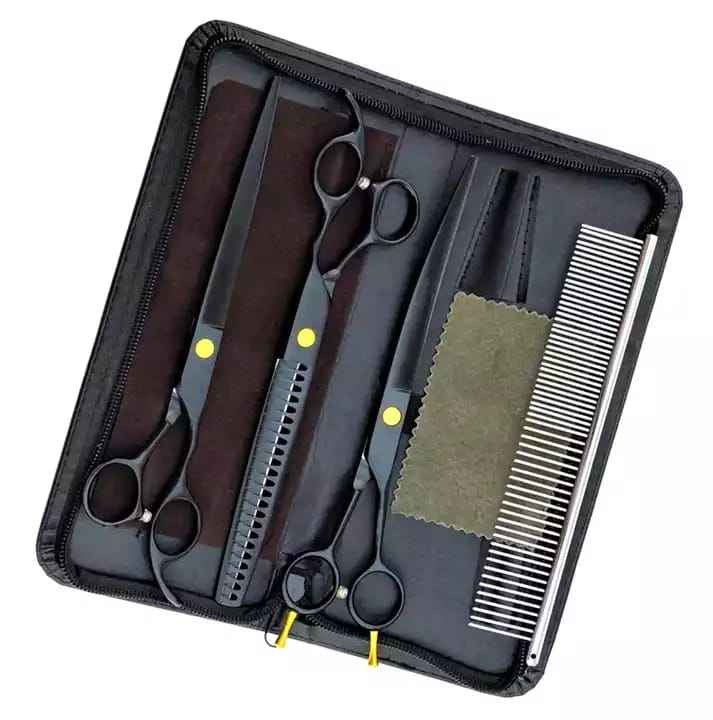 กรรไกรตัดขนสัตว์เลี้ยงสีดำ คุณภาพดีที่สุด กรรไกรตัดแต่งขนโค้ง สำหรับสุนัข