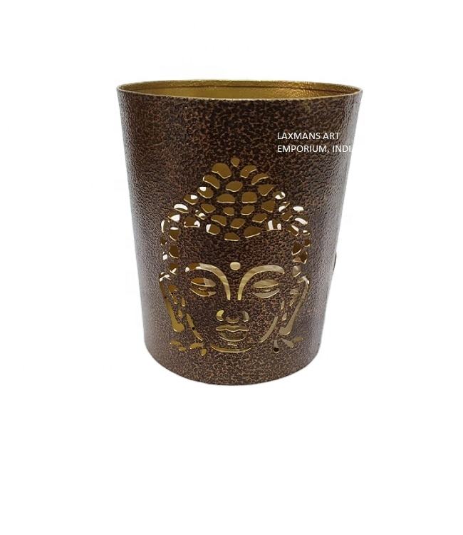เชิงเทียนแกะสลักรูปพระพุทธเจ้าเหล็กสีดำเฉดสีเทียนออกแบบสำหรับตกแต่งบ้านขายส่งจากอินเดีย