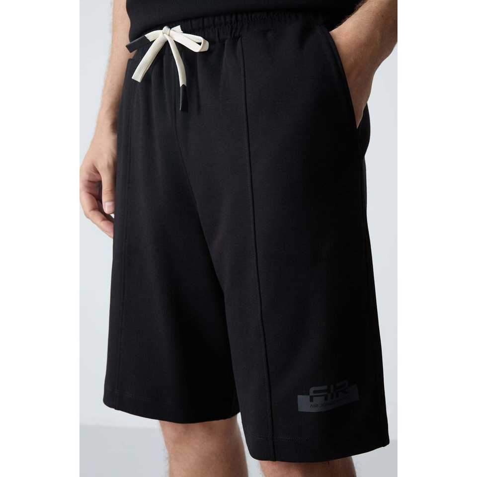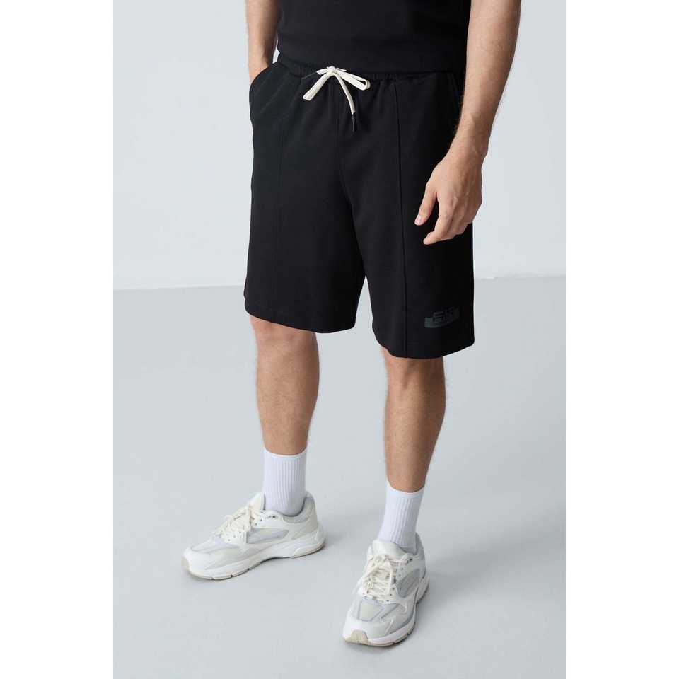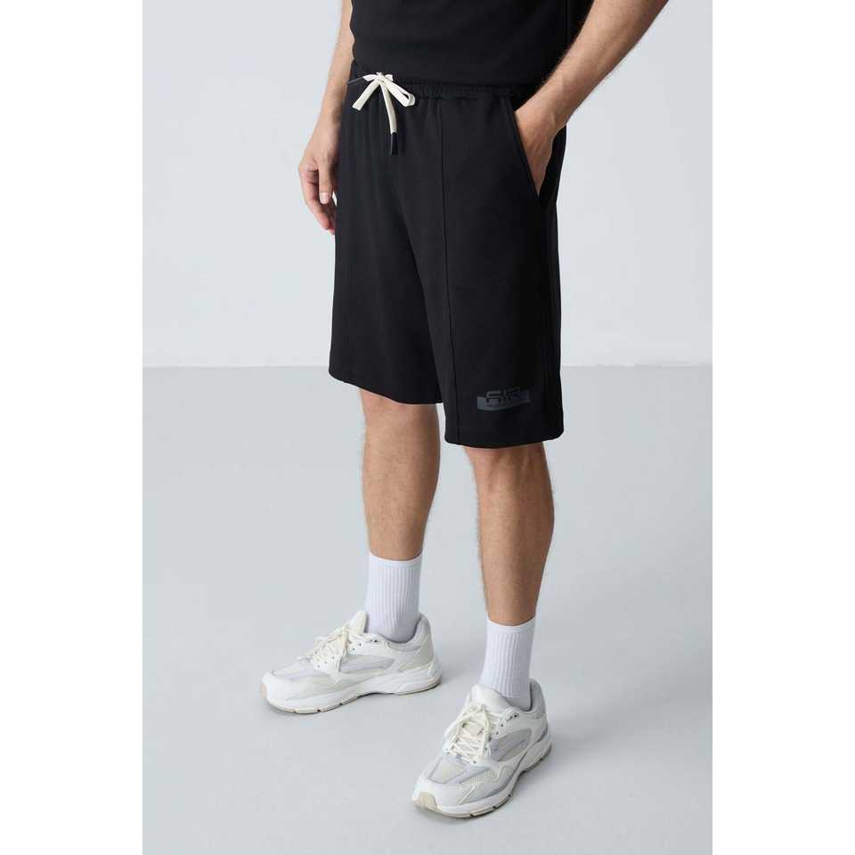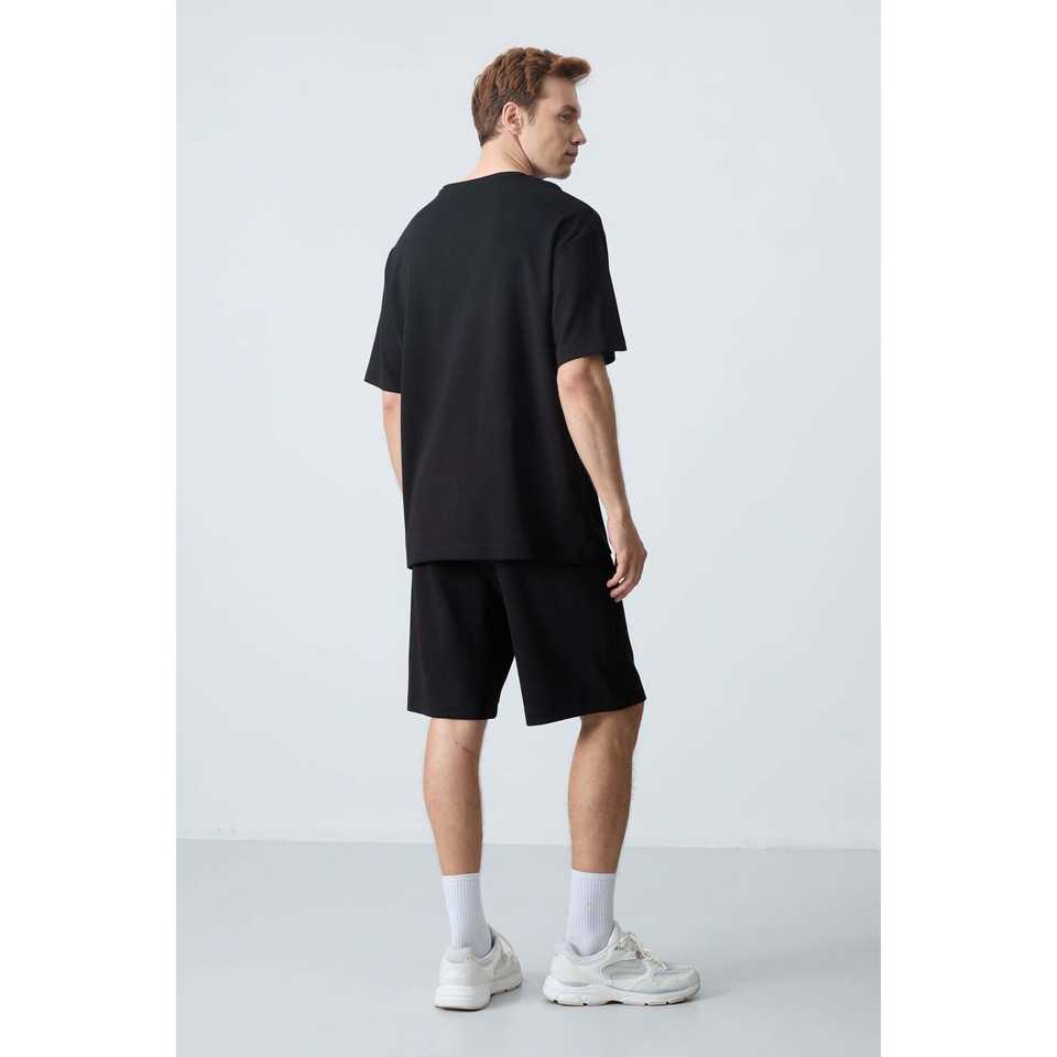 ชุดกางเกงขาสั้นผู้ชายผ้าฝ้ายสีดำทรงโอเวอร์ไซส์ รุ่น 85259 เนื้อผ้านุ่มสบาย สวมใส่สบายๆ