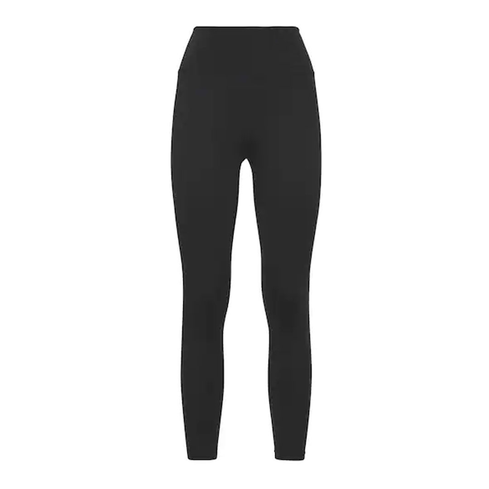 ชุดเล่นโยคะผ้าฝ้ายสีดำสำหรับผู้หญิงเลกกิ้งออกกำลังกายอ้วนสั้นพิมพ์โลโก้แบบไร้รอยต่อสำหรับฤดูหนาว