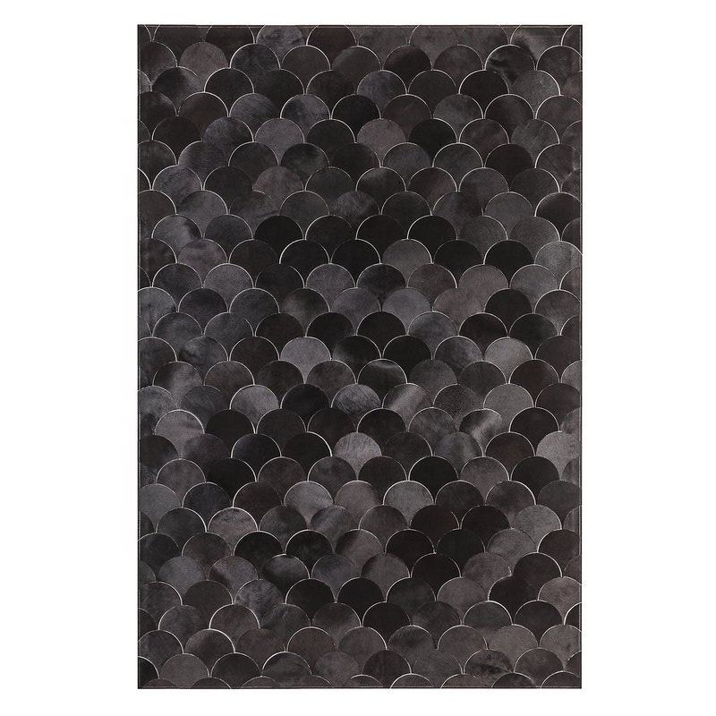 พรมขนวัวสีดำงานแฮนด์เมดพรมขนสัตว์วัวธรรมชาติสำหรับตกแต่งบ้านสำนักงานในร่มและกลางแจ้ง