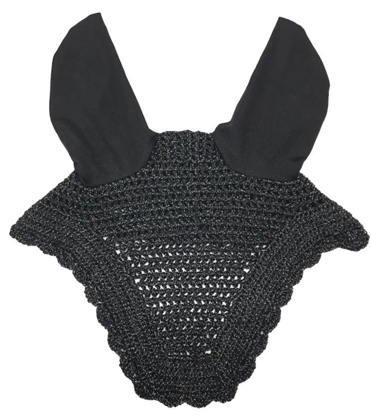 ผ้าคลุมหูม้าถักโครเชต์สีดำคุณภาพสูง ปรับแต่งสีได้ ผ้าเนื้อนุ่ม ป้องกันแมลงวัน ทำด้วยมือ สำหรับขี่ม้า