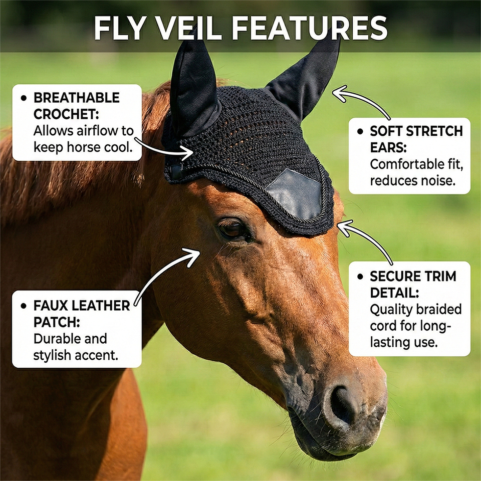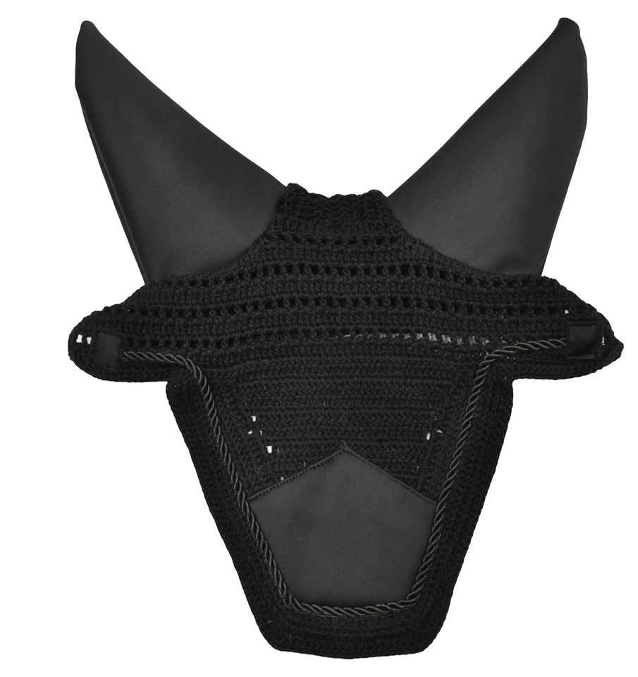 ผ้าคลุมหูม้าถักโครเชต์สีดำคุณภาพสูง ป้องกันแมลงวัน ทำด้วยมือ ปรับแต่งสีได้ สำหรับขี่ม้าและฝึกม้า
