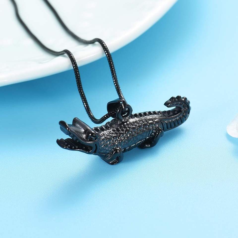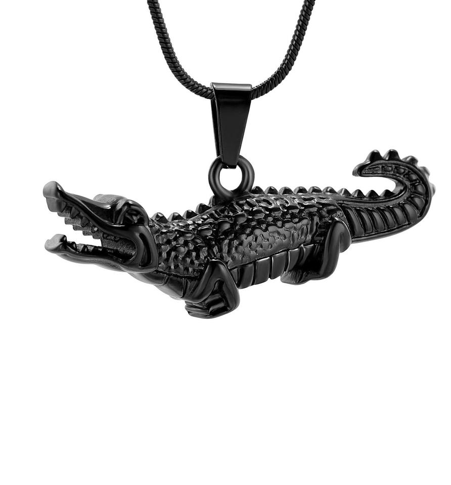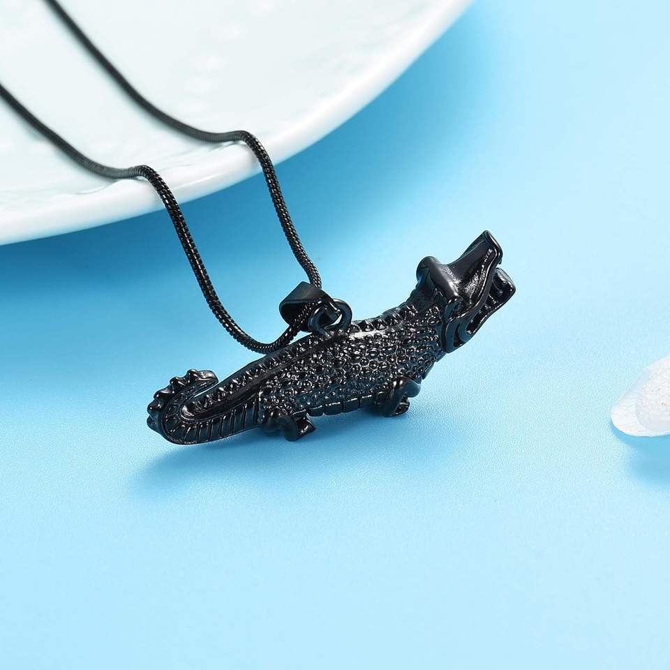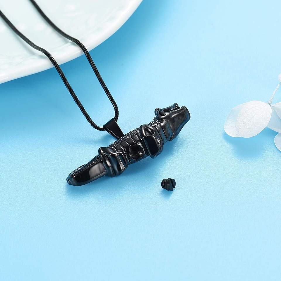 สร้อยคอใส่เถ้ากระดูกจระเข้สีดำทันสมัยทำจากสเตนเลสขี้เถ้าออกแบบได้ตามต้องการที่ระลึกอายุยืน