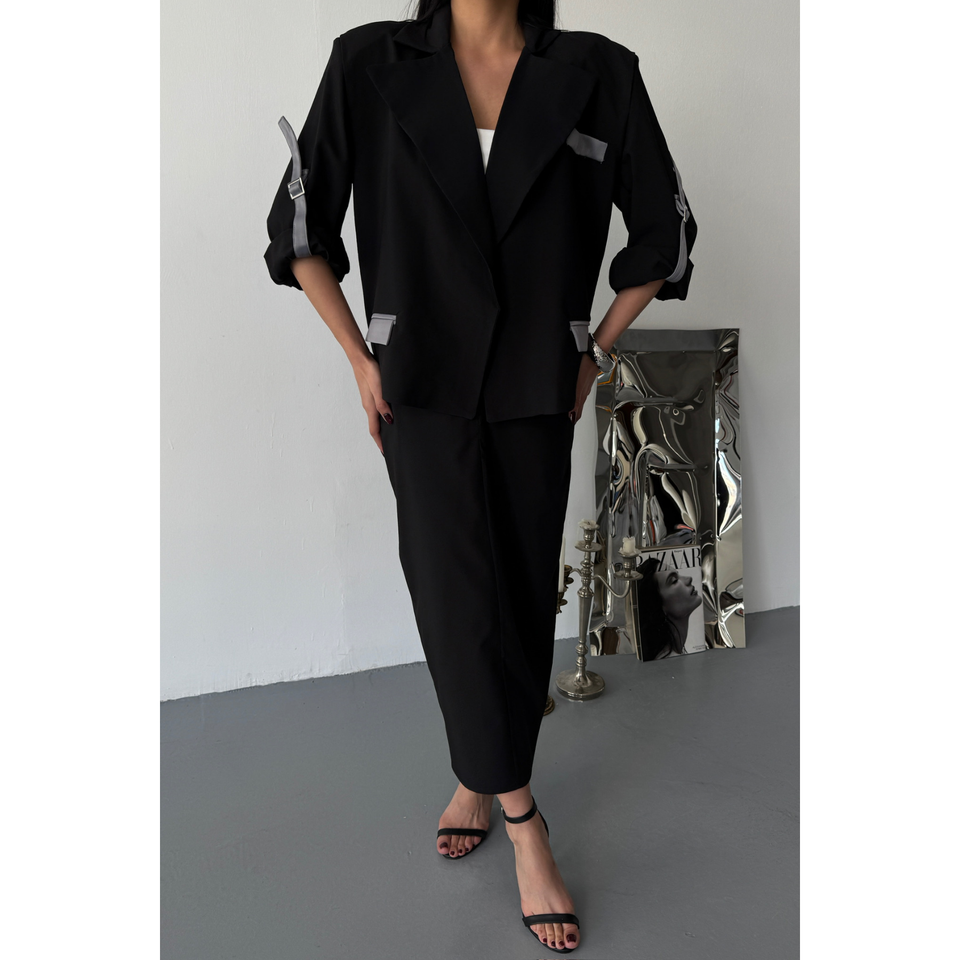 ชุดเสื้อครอปสีดำและกระโปรงเหนือเข่า ชุดลำลอง 2 ชิ้น พร้อมกางเกงขาสั้นและเสื้อท่อนบนเข้าชุด