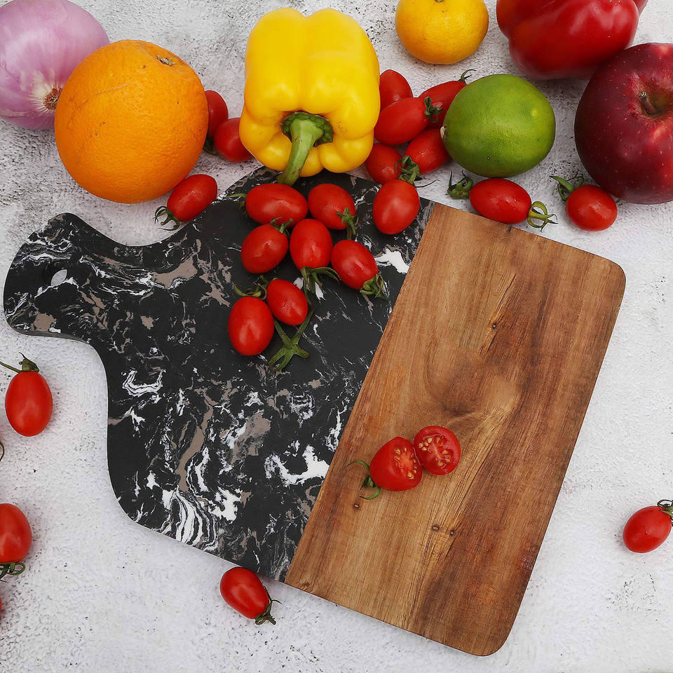 Black Cutting Board With Marble And Natural Wood Serving Board
