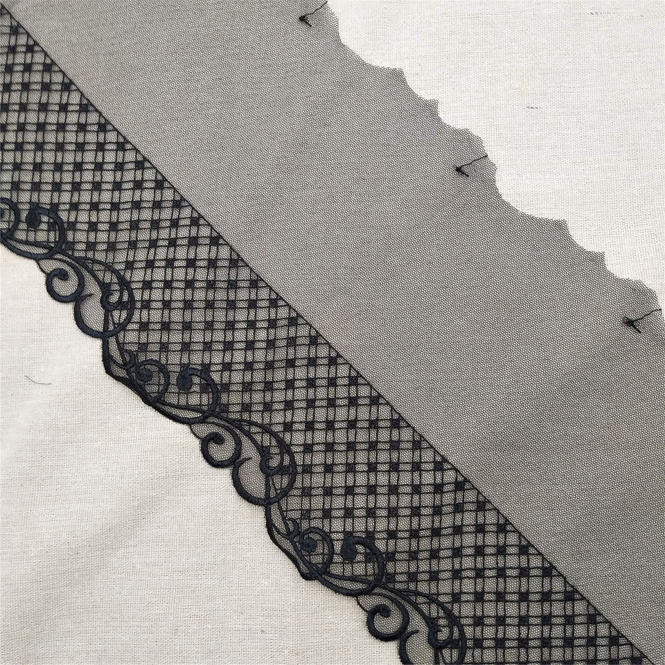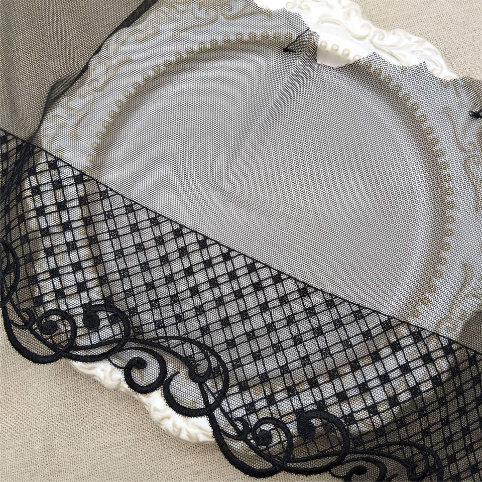 ลูกไม้ตาข่ายตกแต่งสีดำมีลวดลายปักผ่านเทคโนโลยีละลายน้ำได้เน้นการตกแต่งบ้านระดับไฮเอนด์