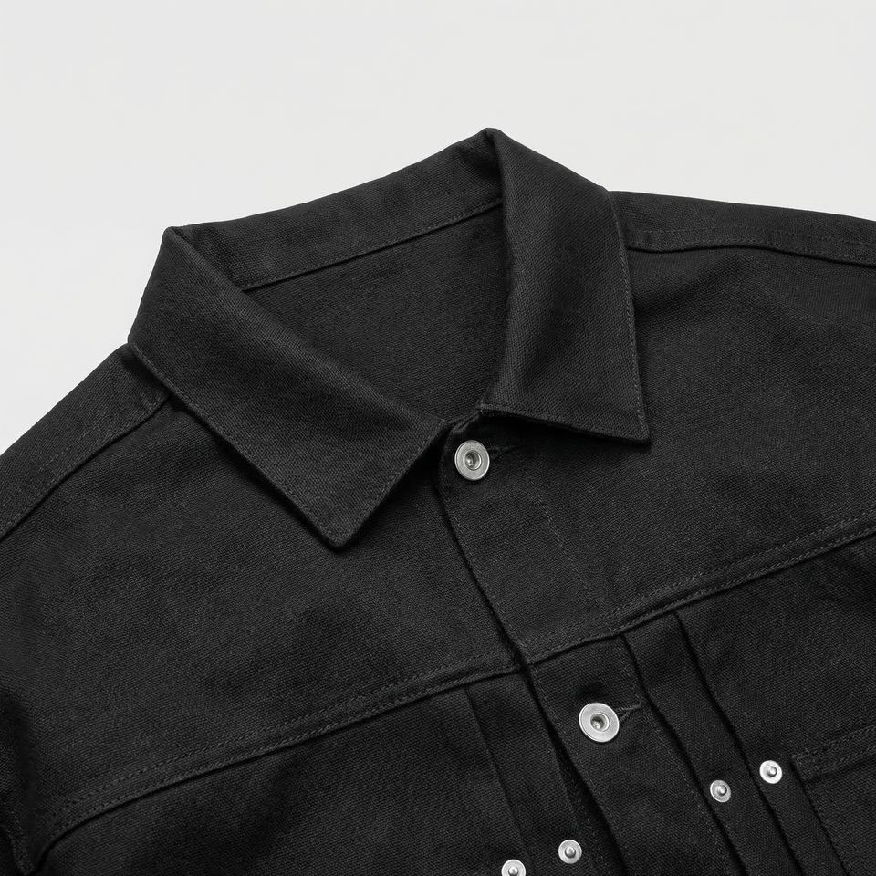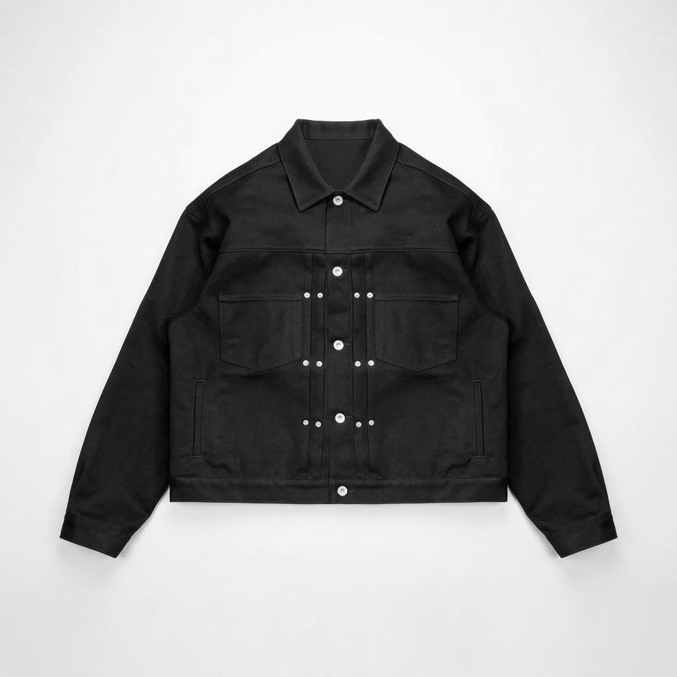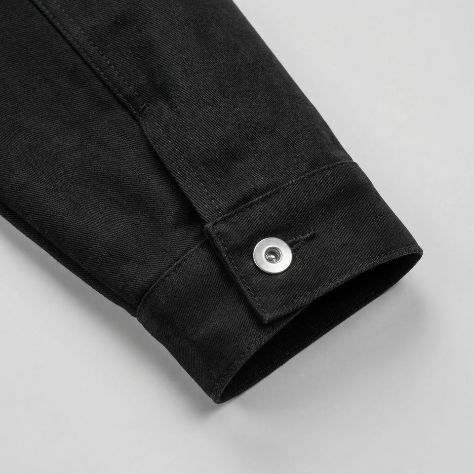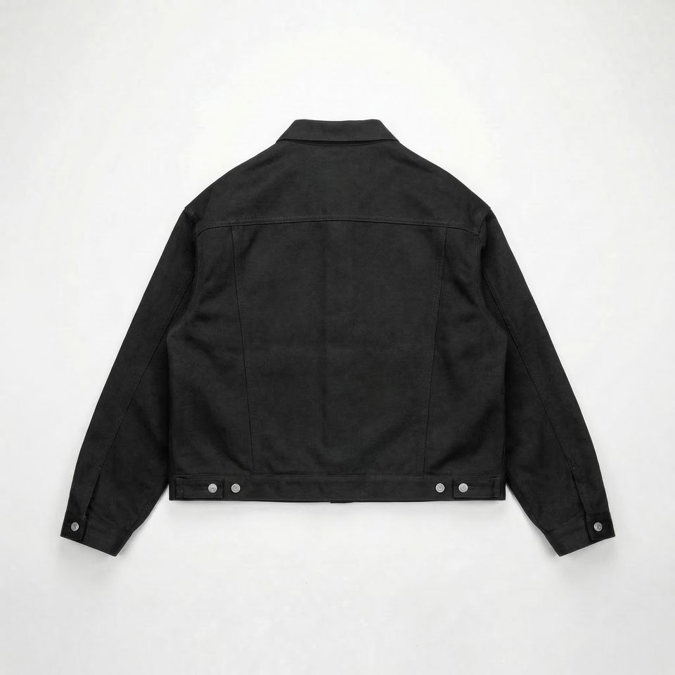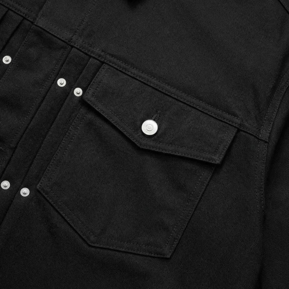 แจ็คเก็ตยีนส์สีดำแบบ Trucker | เสื้อโค้ทเดนิมทรงโอเวอร์ไซส์สไตล์สตรีทแวร์ติดกระดุม | แจ็คเก็ตเดนิมฟอกสีแบบหนา | ผู้ผลิต OEM ตามสั่ง