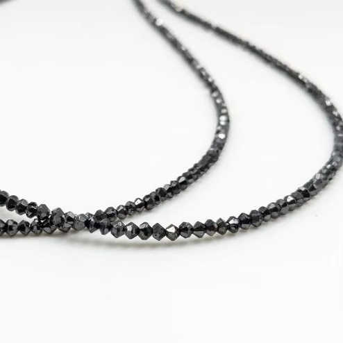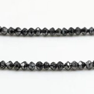 ลูกปัดแบล็คไดมอนด์สำหรับทำเครื่องประดับ ขายส่ง คุณภาพเกรด AAA+ แบบเส้นเต็มเม็ดเหลี่ยมทรงรอนเดลล์ ขนาด 15 นิ้ว พร้อมใบรับรองจากผู้ตรวจสอบอิสระ