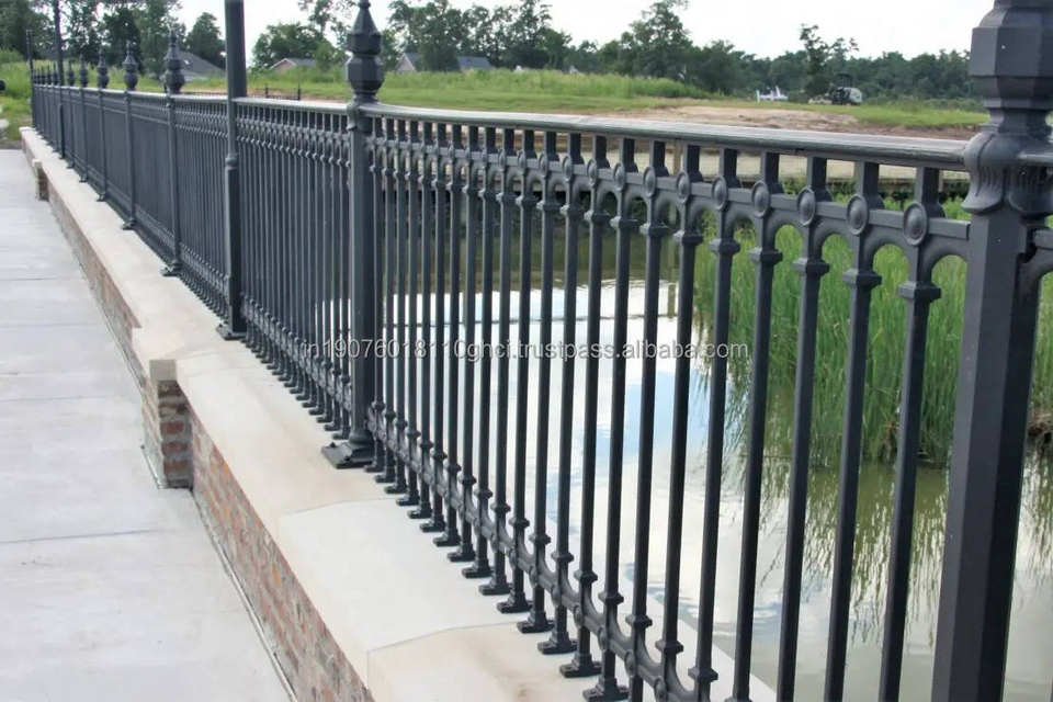 ราวบันไดเหล็กหล่อเพชรสีดำยิงซุปเปอร์ระเบิดทันสมัยสีเทาขัดเงาแผงหล่อระเบียงประตูกลางแจ้ง