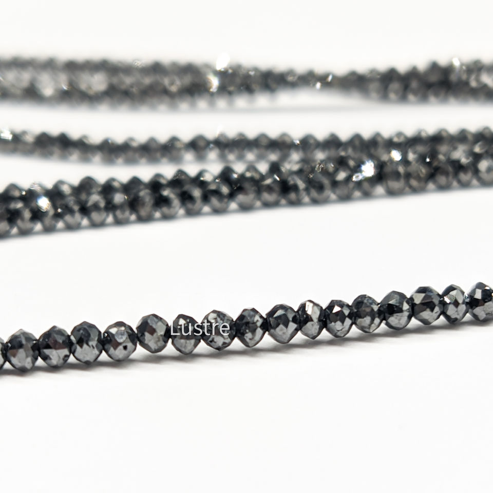 ลูกปัดเพชรดำทรงรอนเดลสำหรับทำเครื่องประดับ ขนาด 2-3 มม. ความยาว 15 นิ้ว คุณภาพ AAA ระดับท็อป ขายส่ง แบรนด์ลัสเตอร์ ตรวจสอบโดยบุคคลที่สาม