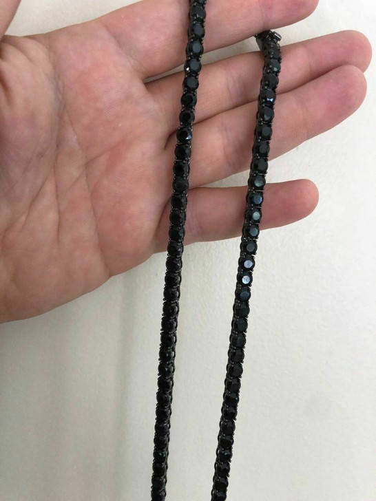 ห่วงโซ่เทนนิสเพชรสีดำ925ทึบโซ่เงินสเตอริงแถวเดียวน้ำแข็งของผู้หญิงสำหรับเครื่องประดับแฟชั่นของผู้หญิง