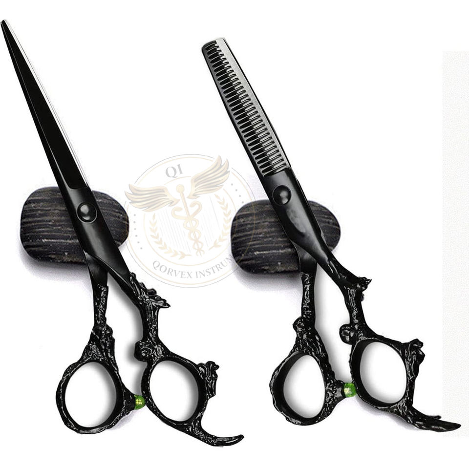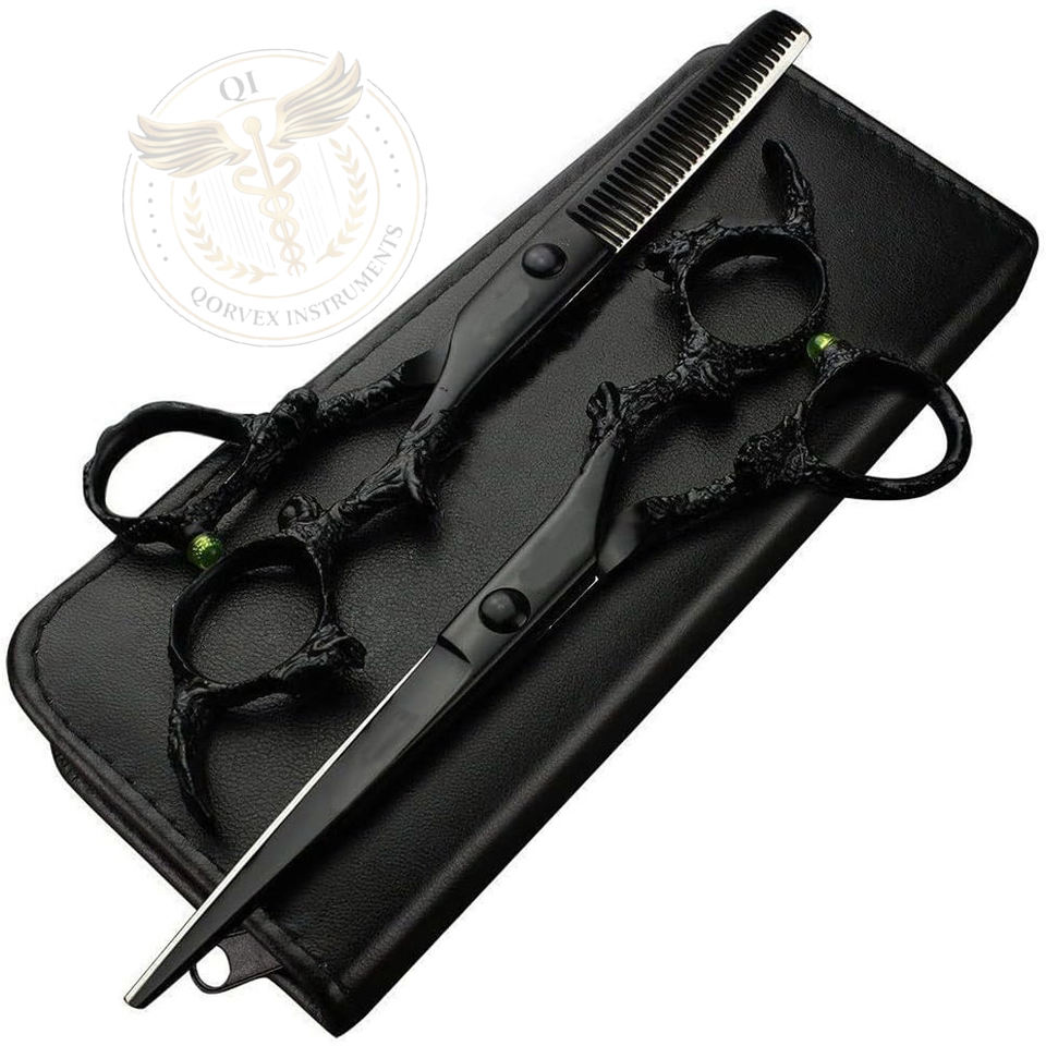กรรไกรตัดผม Black Dragon 6.0 นิ้ว รุ่นมืออาชีพ ด้ามจับลายมังกร ผลิตจากเหล็กกล้าไร้สนิม J2 สำหรับคนถนัดขวา ใช้ในร้านตัดผมหรือที่บ้าน (ชุดกรรไกร)