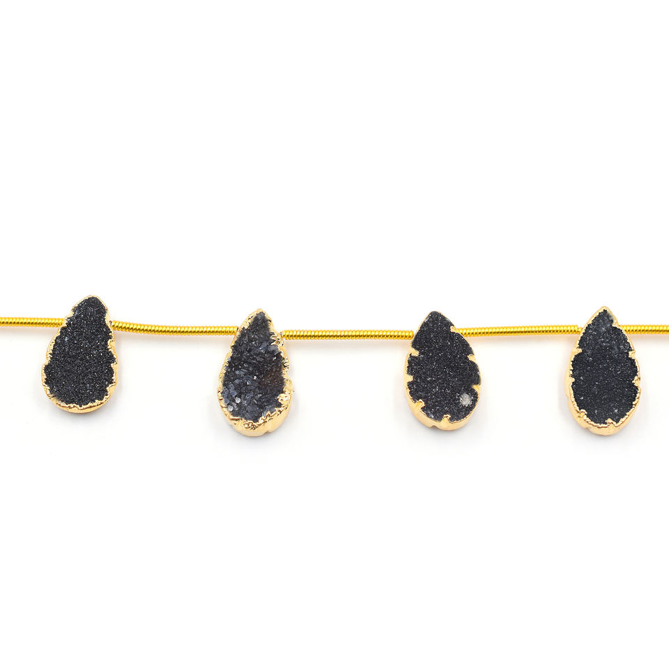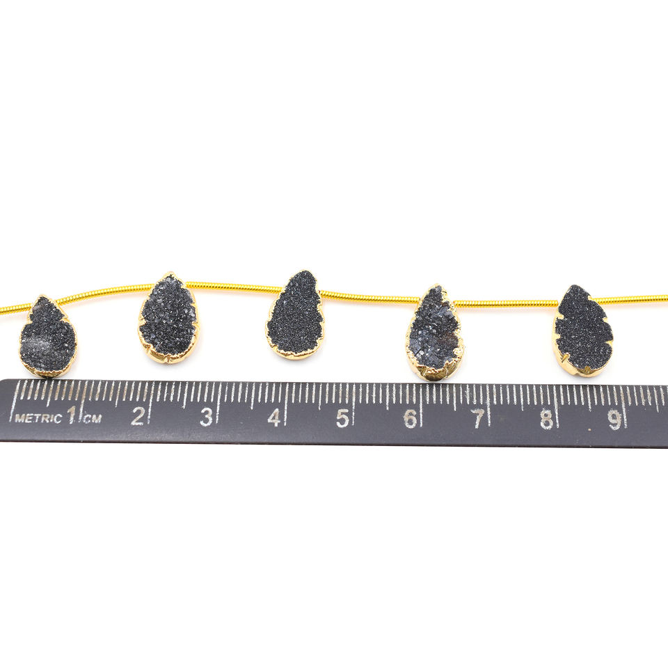 Druzy สีดำ13ถึง15มม. รูปทรงลูกแพร์เจาะด้านข้างชุบทอง10เส้นลูกปัด