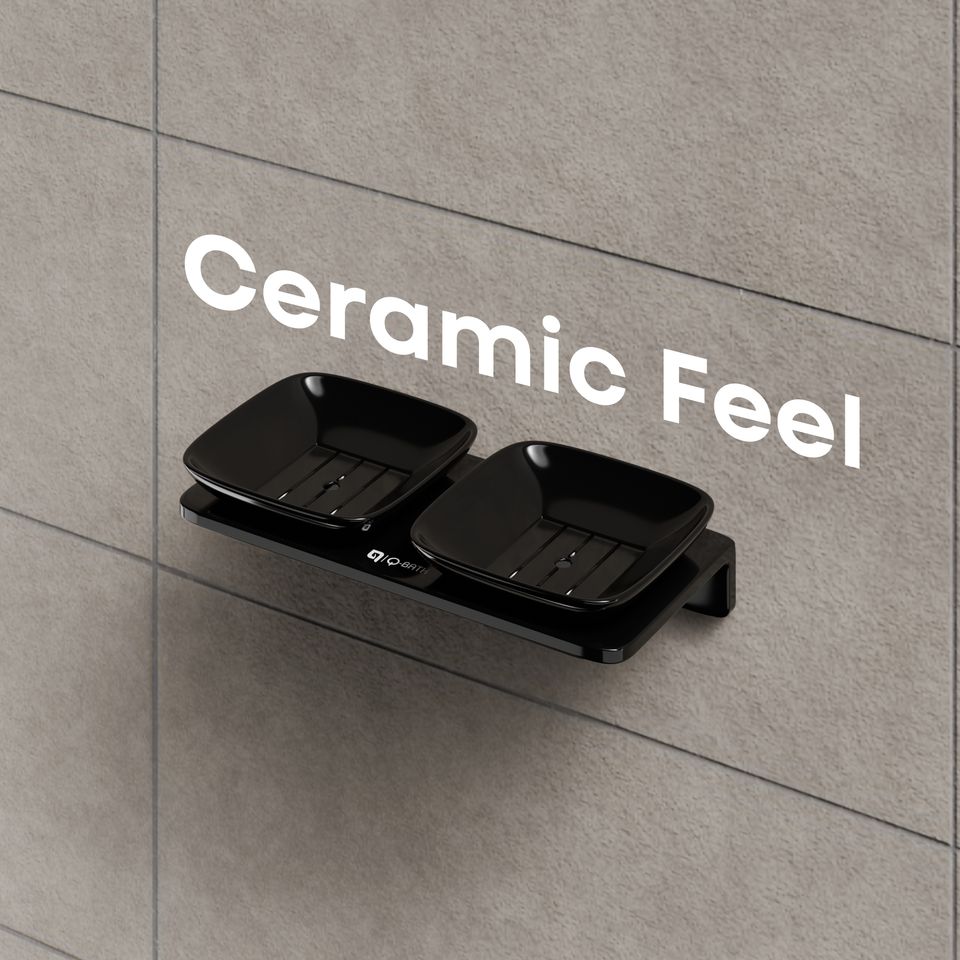 ถาดสบู่สองชั้นสีดำแบบติดผนัง ที่วางสบู่แบบกาว ไม่ต้องเจาะ ชั้นวางสแตนเลส อุปกรณ์ห้องน้ำทันสมัย