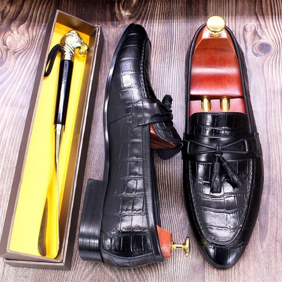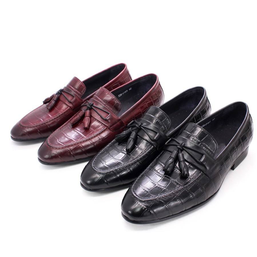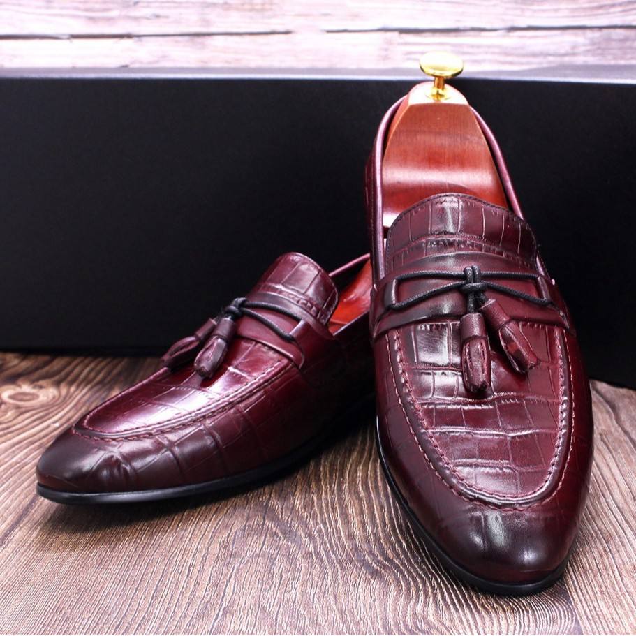 รองเท้าสวมแบบสลิปออนสีดำ ทนทาน เพิ่มความสูง เหมาะสำหรับงานปาร์ตี้และงานทางการ ตกแต่งด้วยพู่ทำมือ หนังวัวคุณภาพสูง