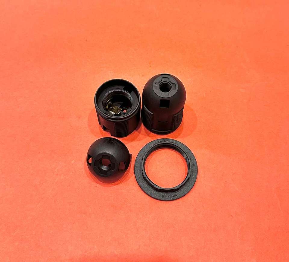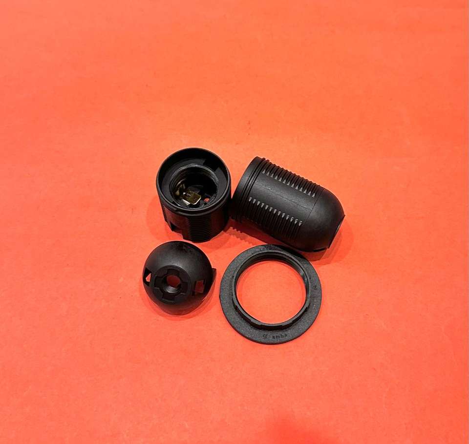 วงแหวนยึดหลอดไฟพลาสติกสีดำ E27 เกลียวเต็ม สำหรับฐานโคมไฟห้อย Amba Plastics รุ่น DH-601 FT ติดตั้งง่าย