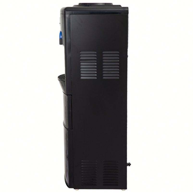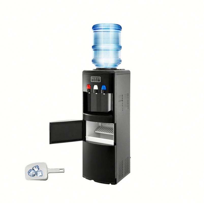 ตู้ทำน้ำเย็นไฟฟ้าสีดำพร้อมเครื่องทำน้ำแข็งในตัวบ้านพลาสติกอุณหภูมิห้องร้อนและเย็นสำหรับใช้ในโรงแรม