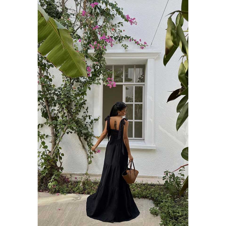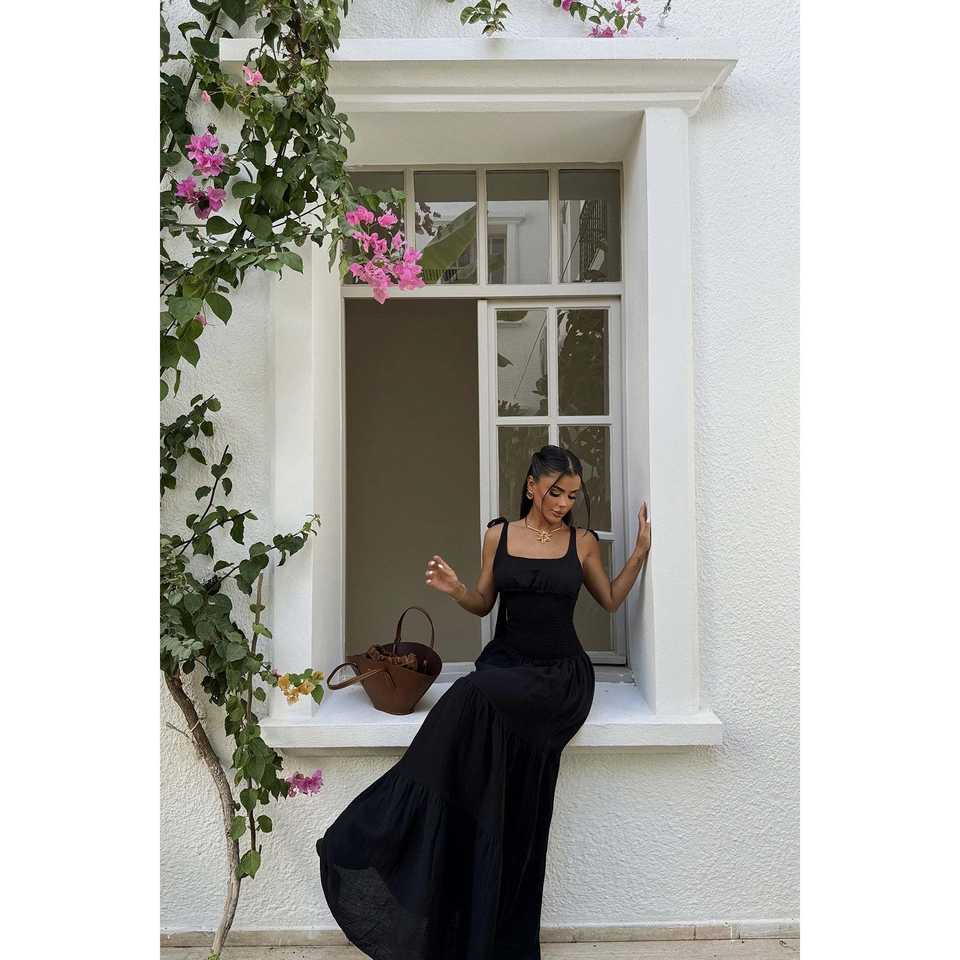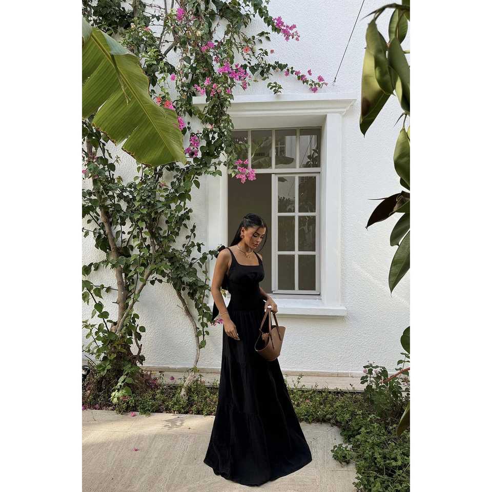 ชุดเดรสยาวสีดำหรูหราประดับด้วยผ้าจับจีบ ตกแต่งด้วยโครเชต์แบบสั่งทำพิเศษ ชุดเดรสสำหรับงานปาร์ตี้สำหรับผู้หญิงไซส์พลัส ฟรีไซส์ ความยาวคลุมเท้า