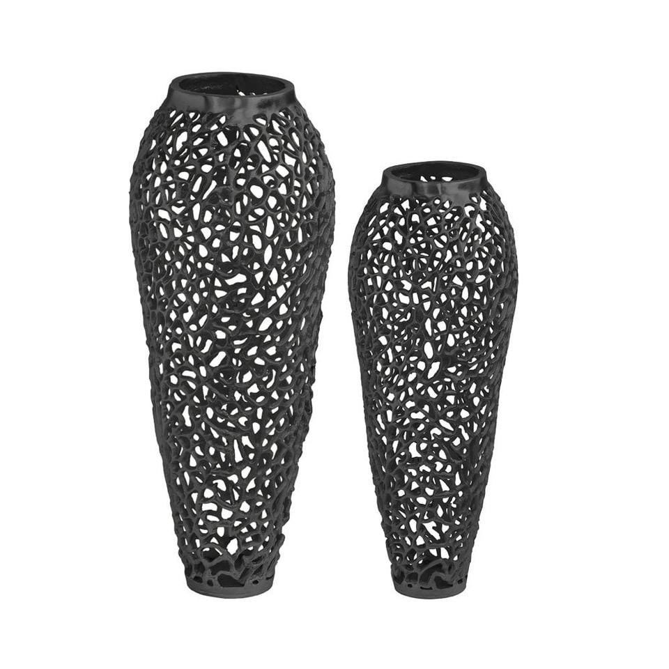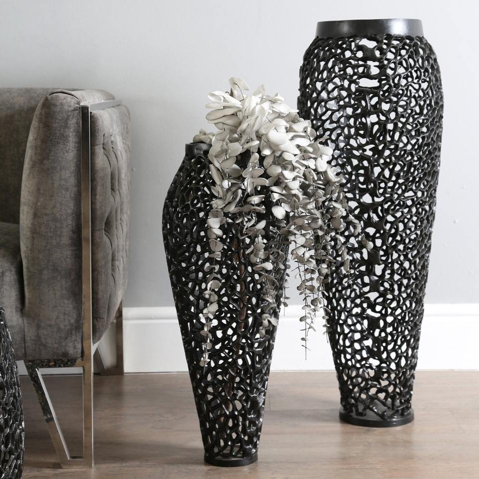 แจกันโลหะยาวหรูหราสีดำเหมาะสำหรับการตกแต่งห้องนั่งเล่นและการตกแต่งภายในที่นุ่มนวลด้านหน้าของกระจกเพื่อให้ได้รับผลกระทบสองเท่า