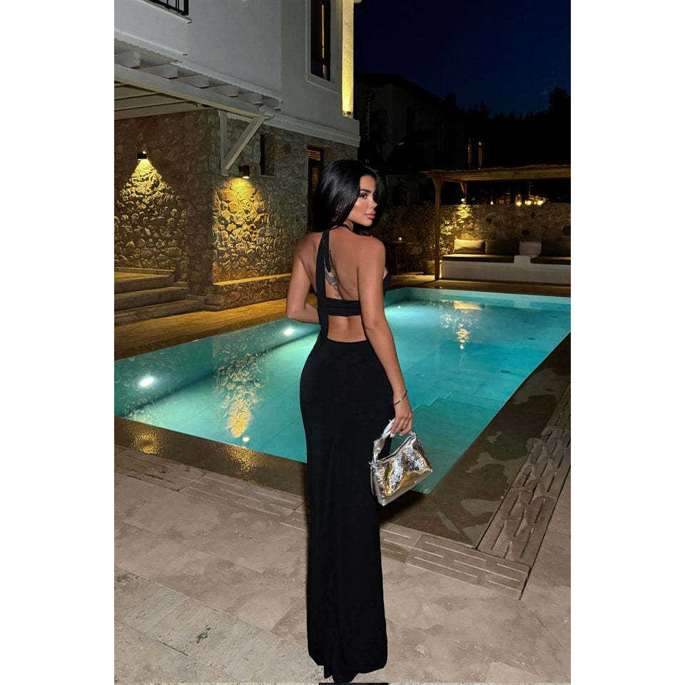 ชุดราตรีทรงบอลกาวน์สีดำ ดีไซน์เอวสูง ประดับคริสตัล พร้อมผ่าข้างสูง ออกแบบตามสั่ง สำหรับงานเลี้ยงอย่างเป็นทางการ ไซส์พลัส XS