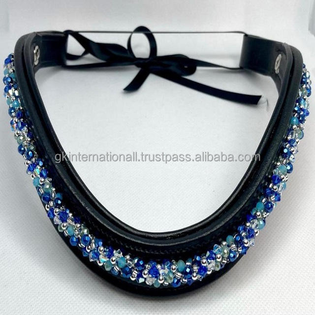 สายรัดหนังสีดำเปล่าลายปักคิ้วม้าประดับด้วยคริสตัลไข่มุกสีชมพูสายรัดหนังมีแผ่นหนังที่รองคิ้วม้า