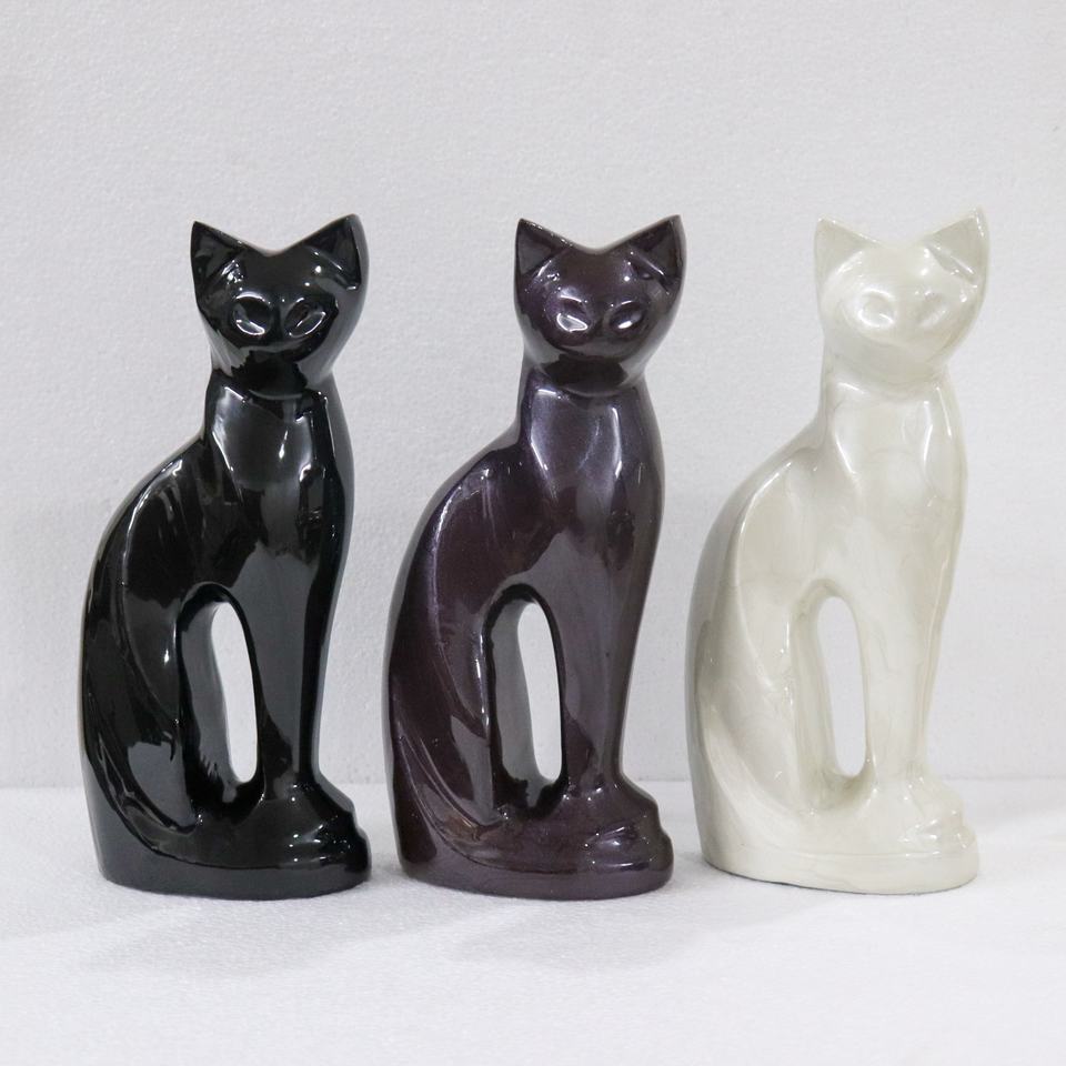 โกศอลูมิเนียมรูปแมวเคลือบสีดำสำหรับใส่เถ้ากระดูกสำหรับสัตว์เลี้ยงรูปปั้นโลหะสำหรับใส่เถ้ากระดูก