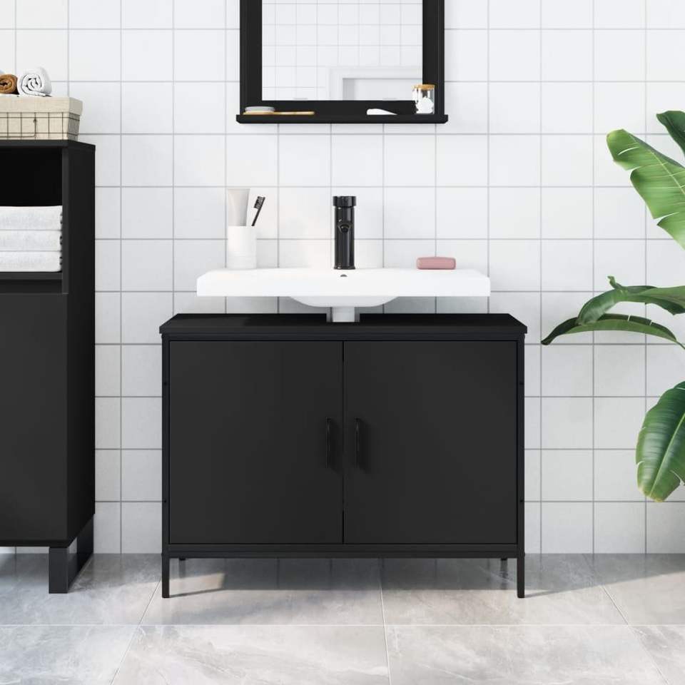 ตู้วางอ่างล้างหน้าในห้องน้ำไม้สีดำ ขนาด 31.5 x 11.8 x 23.6 นิ้ว สำหรับห้องน้ำ