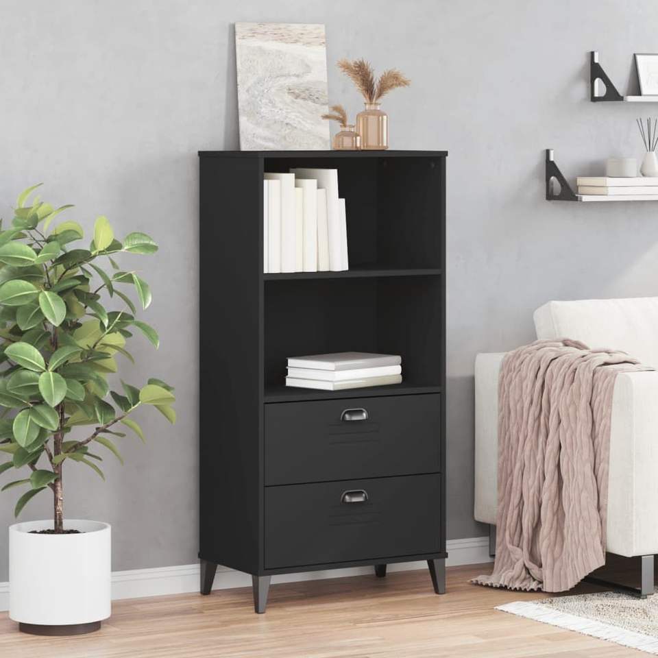 ชั้นวางหนังสือไม้สีดำพร้อมชั้นวางหนังสือพลาสติกขนาดกลาง ดีไซน์หรูหราและทนทาน