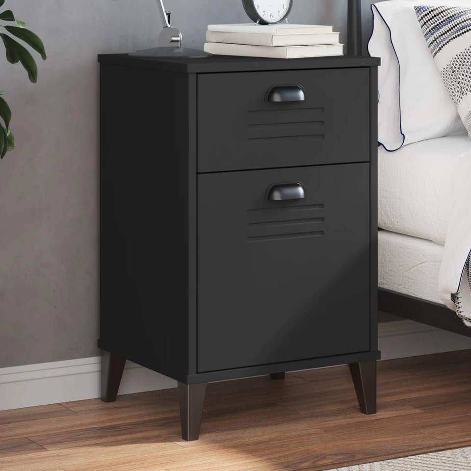 โต๊ะข้างเตียงไม้สีดำและพลาสติกขนาดกลาง
