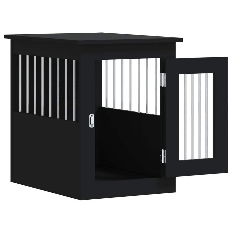 เฟอร์นิเจอร์กรงสุนัขไม้สังเคราะห์สีดำและเหล็ก ขนาด 17.7x24.4x23.2 นิ้ว ในหมวดบ้านสัตว์เลี้ยงและเฟอร์นิเจอร์