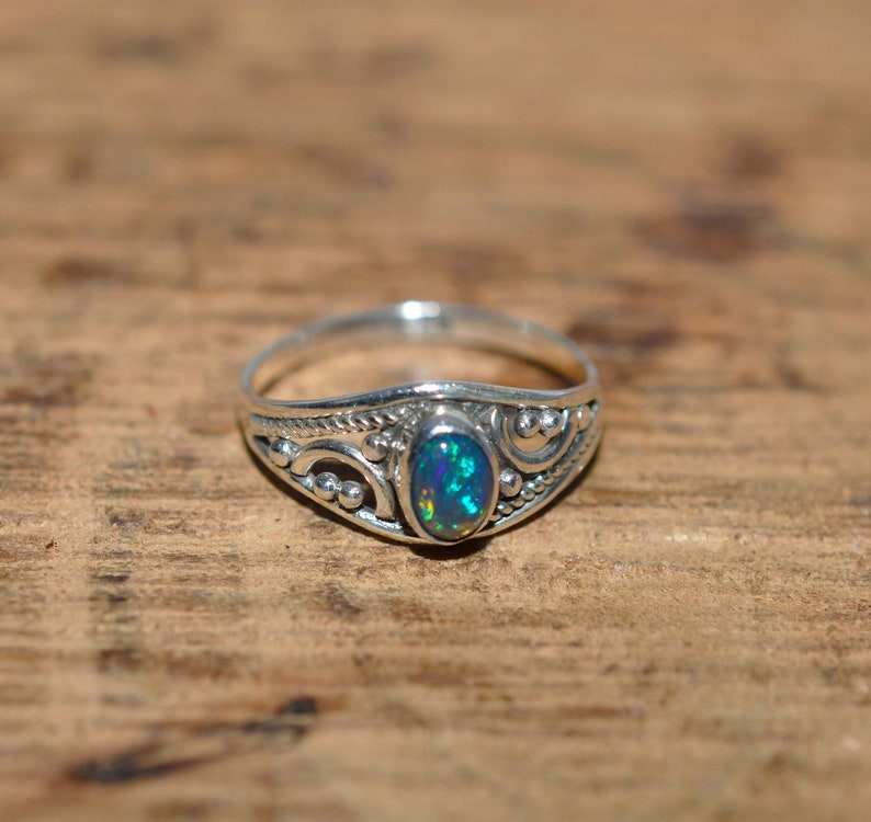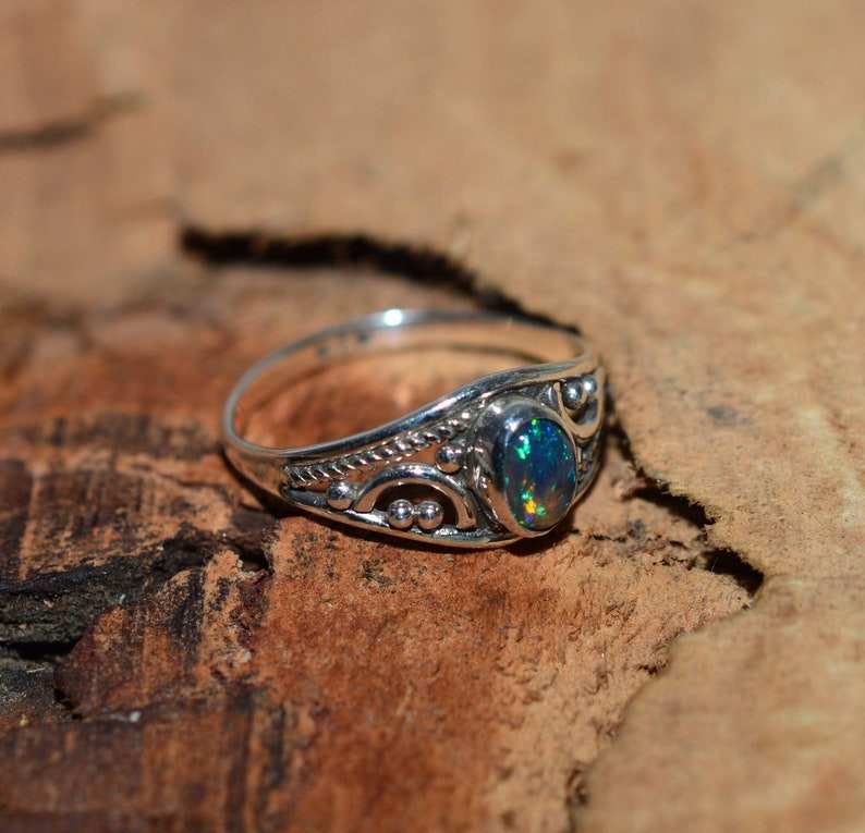 แหวนอัญมณีธรรมชาติ925โอปอลสีดำของเอธิโอเปียของขวัญสำหรับผู้หญิง & เด็กผู้หญิงของขวัญครบรอบสำหรับเธอ