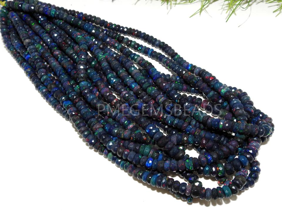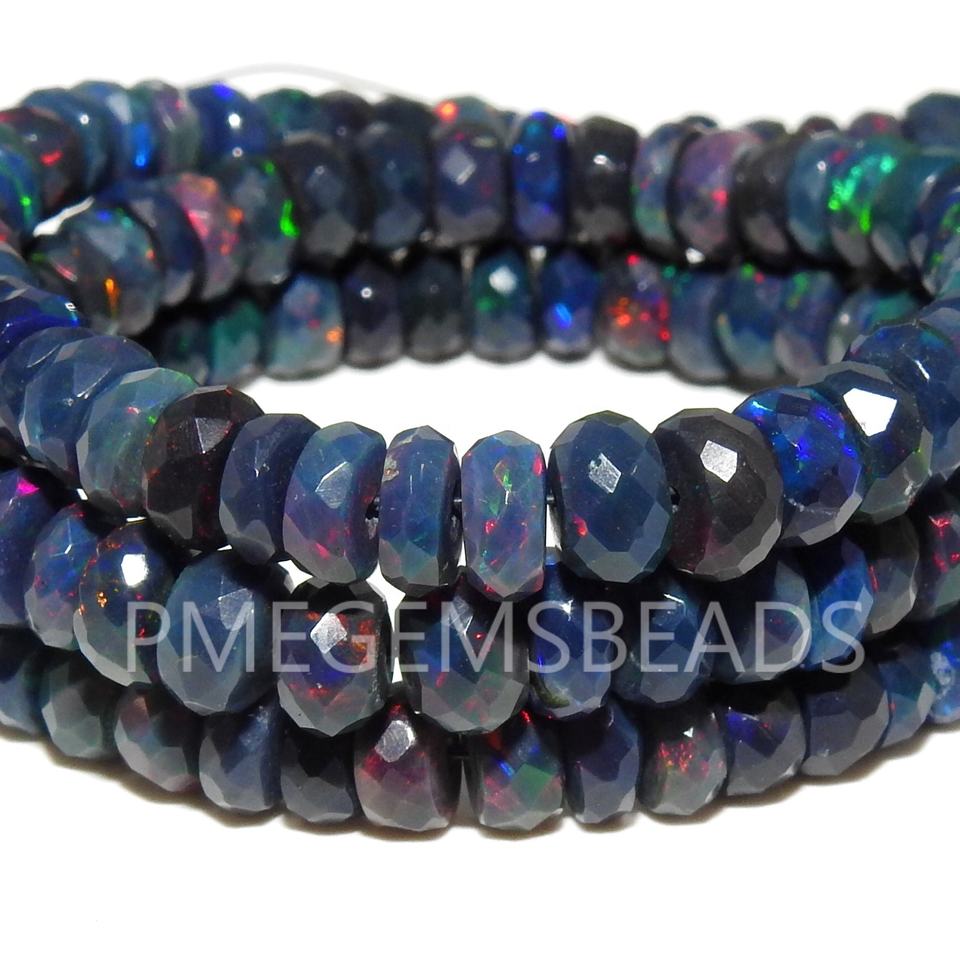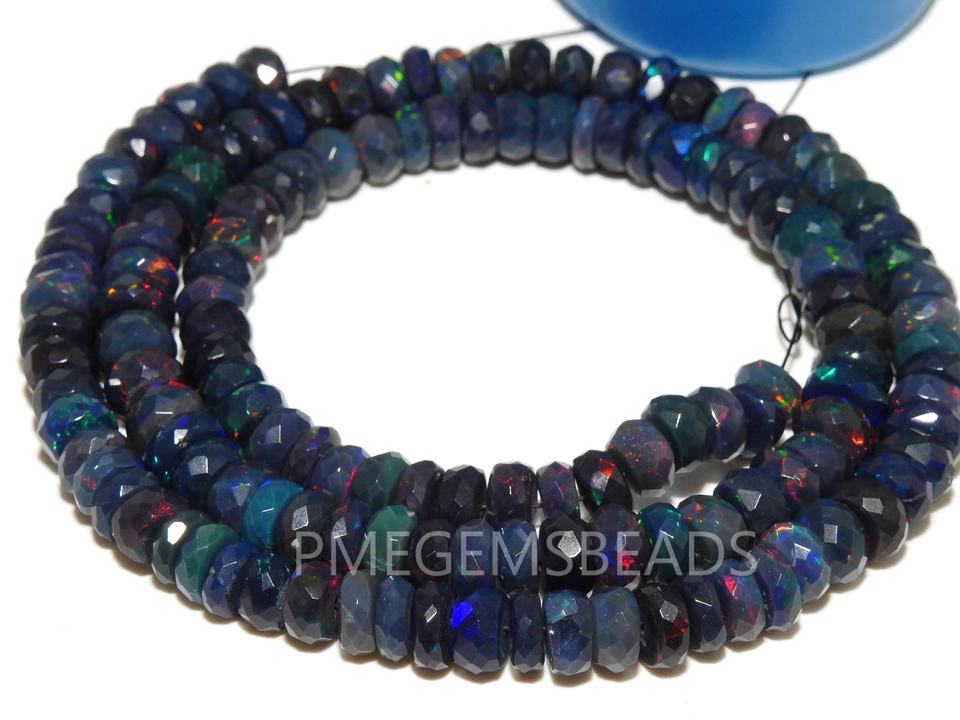 โอปอลเอธิโอเปียสีดำ หลายสี รูปทรงรอนเดลล์เหลี่ยมเพชรพลอย ขนาดประมาณ 6 มม. ความยาวประมาณ 8 นิ้ว หินหลวม ทำด้วยมือ สำหรับทำเครื่องประดับ สร้อยคอ