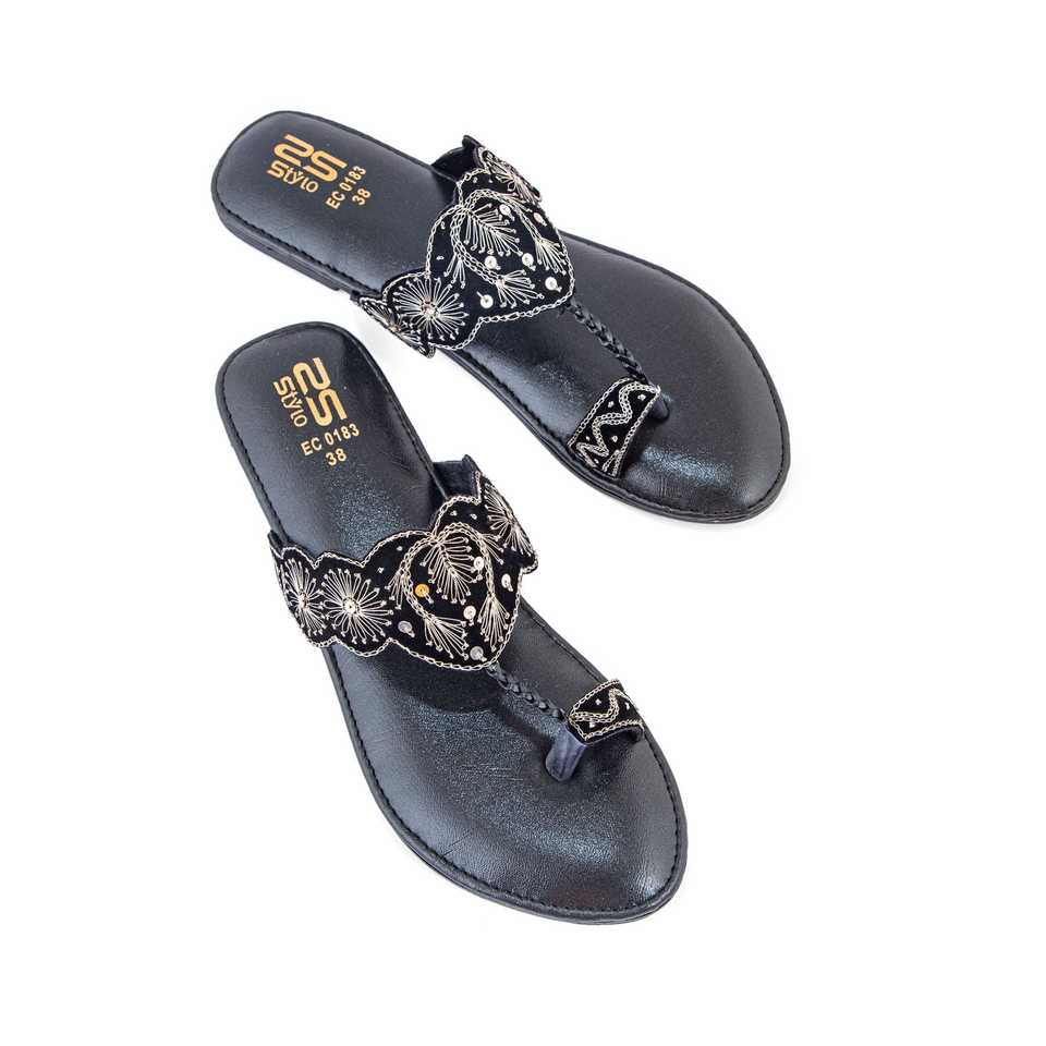 รองเท้าชนเผ่าผ้าใบสีดำอินเทรนด์ EC0183 chappal