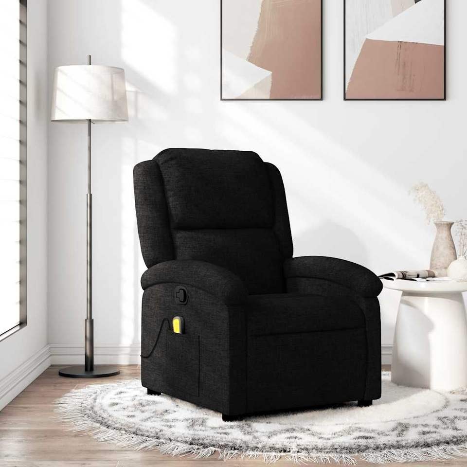 Black Fabric Massage Recliner Chair 100% Polyester Metal Plywood Construction