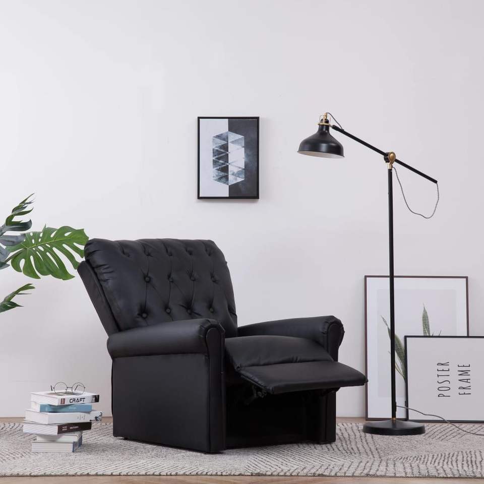 เก้าอี้ปรับเอนหนังเทียมสีดำ ผ้าฝ้าย โพลีเอสเตอร์ พีวีซี ดีไซน์ทันสมัย นั่งสบาย