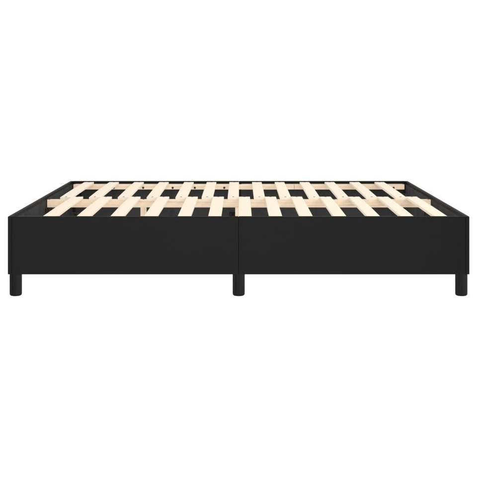 โครงเตียงคิงไซส์หุ้มหนังเทียมสีดำ ทำจากไม้เอ็นจิเนียร์พร้อมฐานไม้อัด