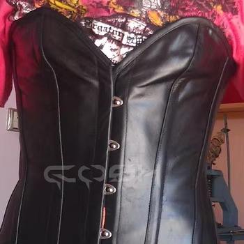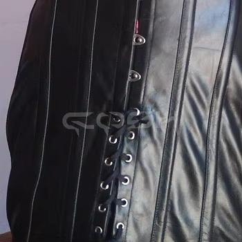 ชุดเดรสคอร์เซ็ทหนังเทียมสีดำรัดเอวทรงยาว พร้อมโครงรัดด้านหน้าและเชือกรัดด้านล่าง เหมาะสำหรับใส่ไปเที่ยวคลับ
