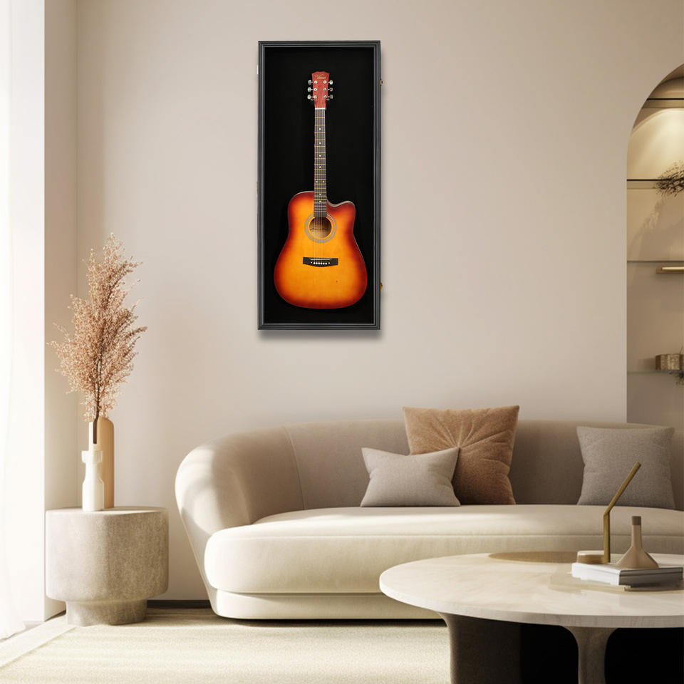 ตู้เก็บของกีตาร์อะคูสติกสีดำล็อคได้กล่องเงาสำหรับทิวทัศน์ดอกไม้สีดำ