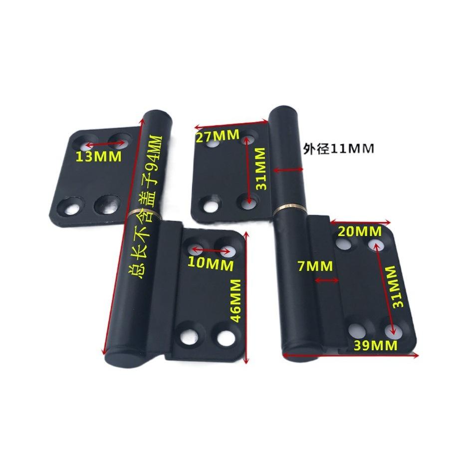 Black Flag-Shape 4-Inch Detachable Hinge Aluminum Alloy Door Hinge for Bathroom & Kitchen 30mm Zinc Non-Flush Type