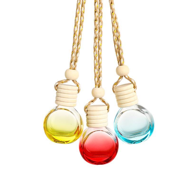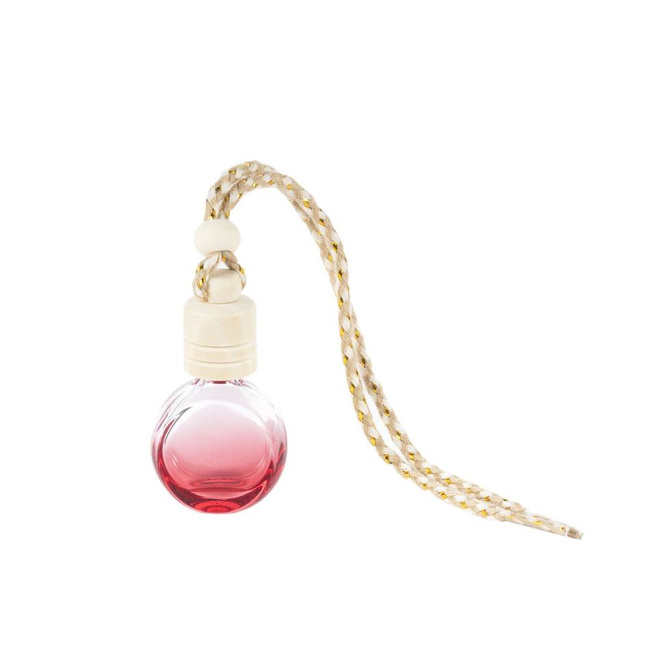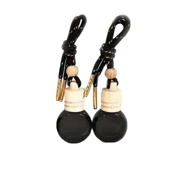 ขวดน้ำหอมปรับอากาศในรถยนต์แบบแขวน ขนาด 10 มล. ทรงกลมแบน สีดำ ฝาไม้