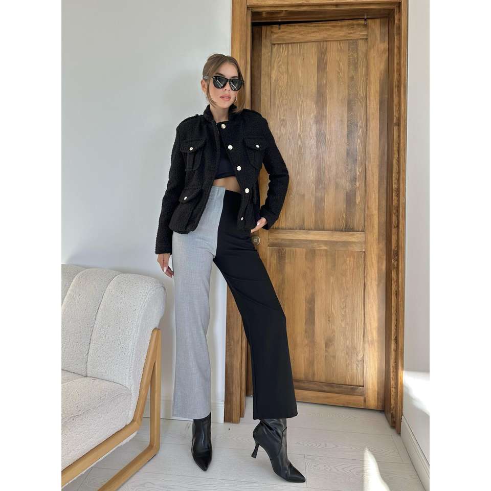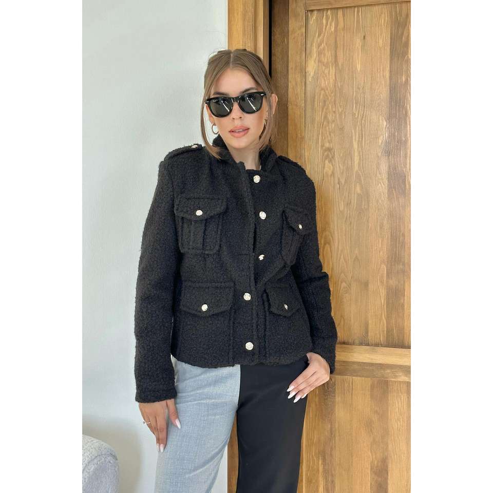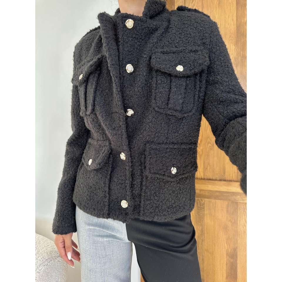 เสื้อแจ็คเก็ตขนแกะสีดำสำหรับผู้หญิง เสื้อโค้ทกันหนาวมีกระเป๋า ไซส์ใหญ่ เสื้อคลุมแฟชั่นลำลอง แขนยาว