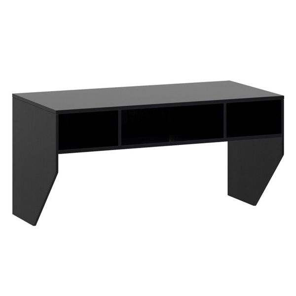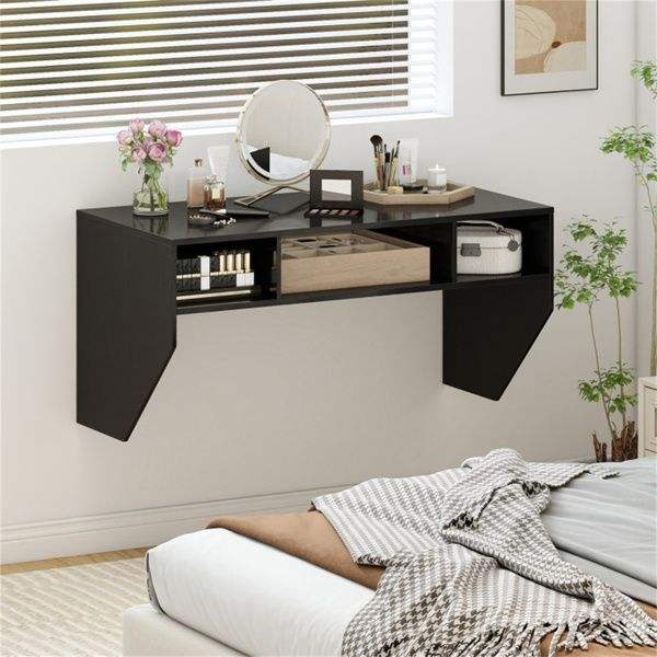 โต๊ะคอมพิวเตอร์แบบแขวนผนังสีดำ พร้อมช่องเก็บของ 3 ช่อง วัสดุไม้แข็งแรง ทนทาน เหมาะสำหรับใช้ในบ้านหรือสำนักงาน